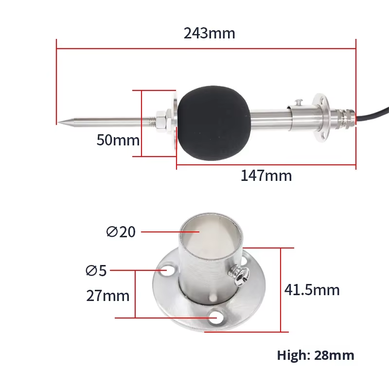 3. The top adopts an extended stainless steel rod, which has a certain lightning protection effect when